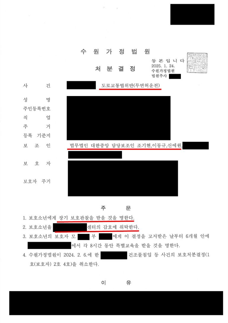 ■ 보호처분 중 무면허운전 중학생,사회내처분 성공사례 ■