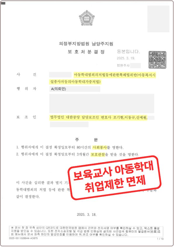 그 결과 재판부는 법무법인 대한중앙의 주장을 인정하며 의뢰인 A씨에게 비교적 가벼운 보호처분을 내렸고, A씨는 취업제한명령도 받지 않을 수 있었습니다.