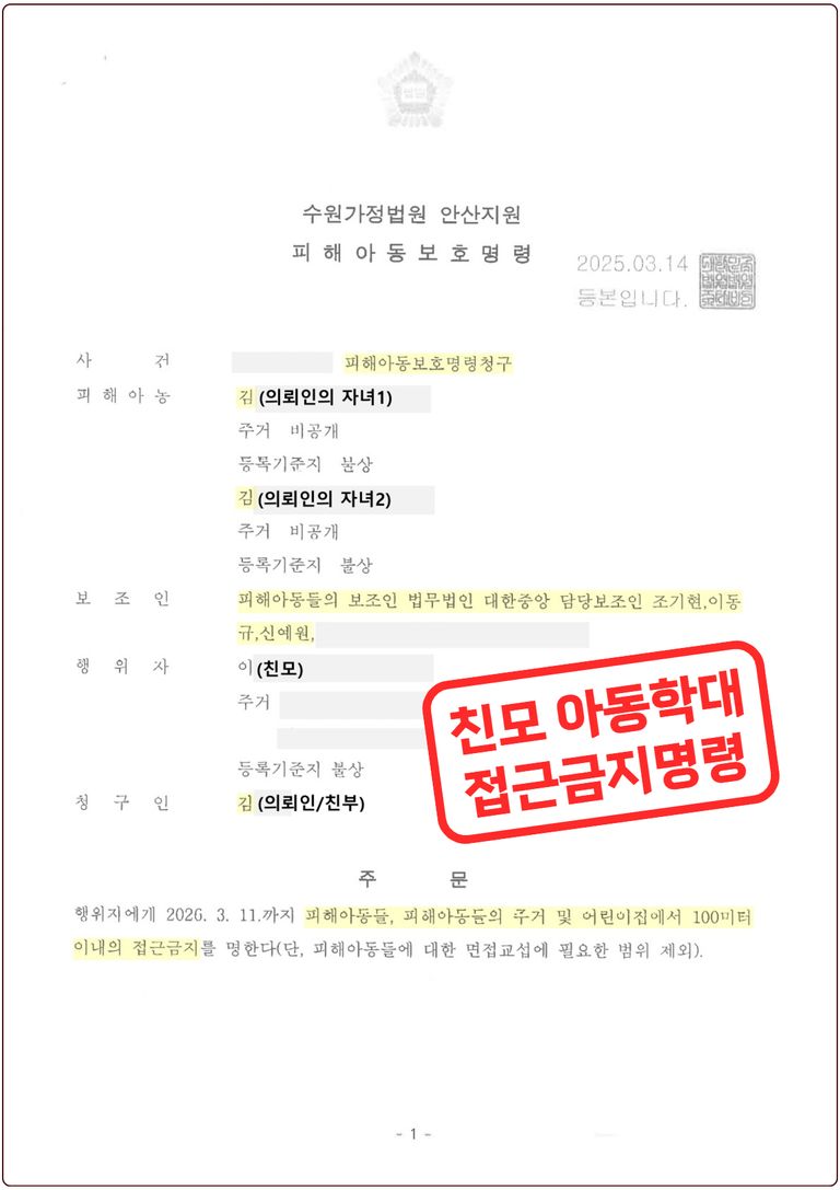 ■ 이혼소송 중 아동학대 친모 접근금지명령 청구 인용 ■