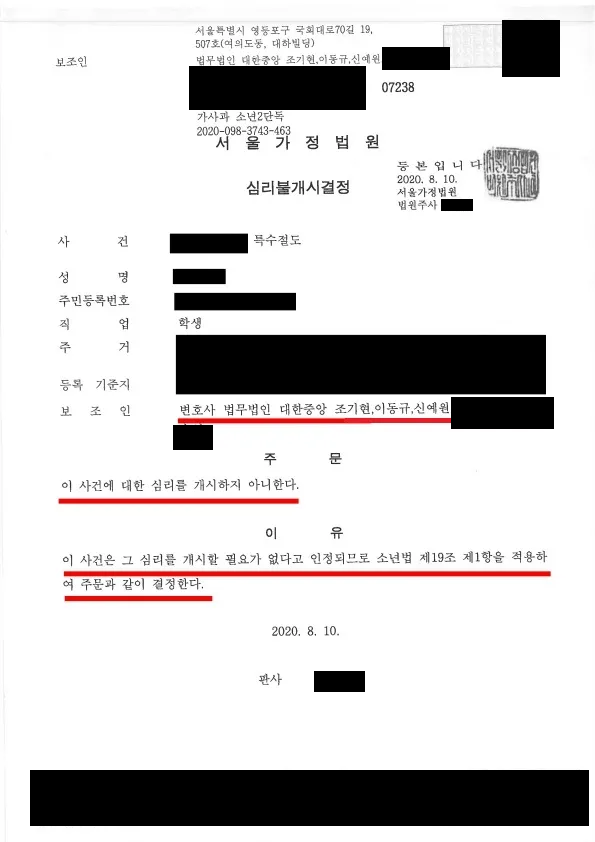 [소년] 특수절도 고등학생 심리불개시 결정!